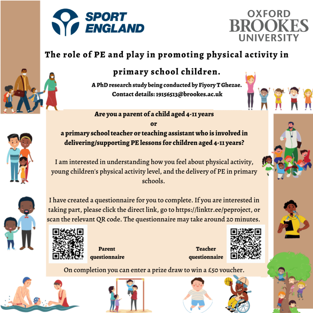 Fiyory will also be carrying out the second stage of her study in schools, so if you are interested in having her take over some PE sessions then please email her at: 19156513@brookes.ac.uk.