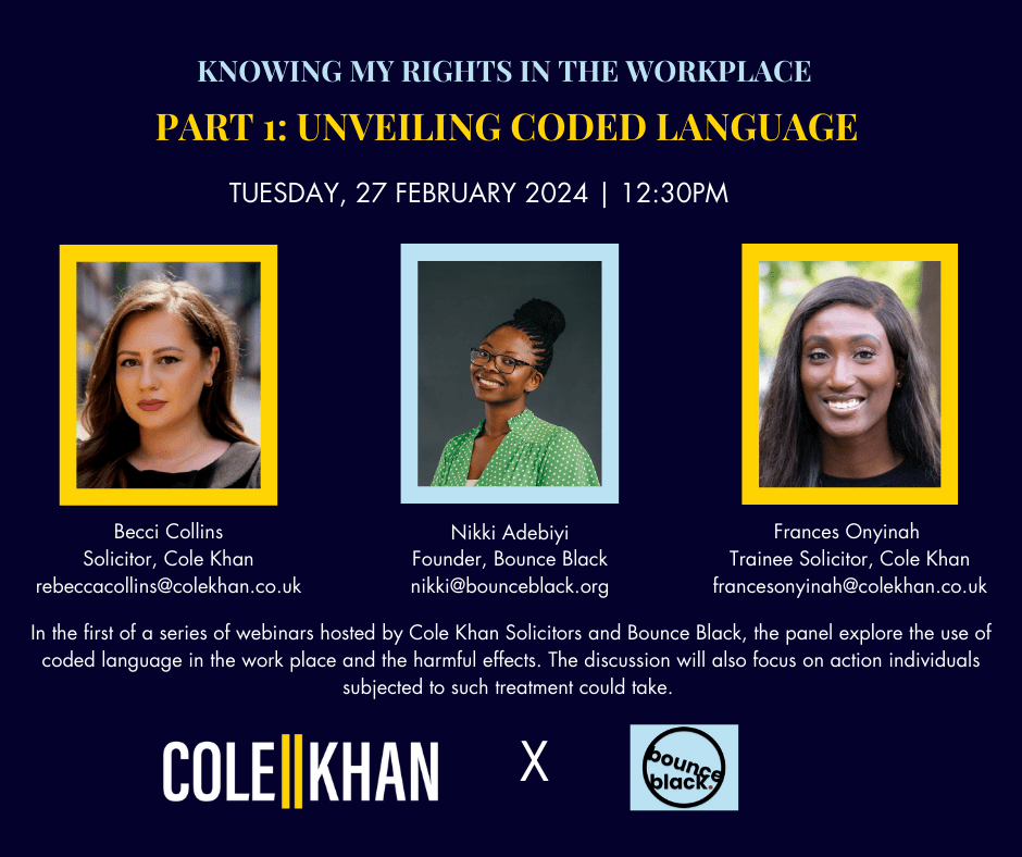 Nikki Adebiyi is joined by Becci Collins and Frances Onyinah of Cole Khan Solicitors to discuss coded language and subtle forms of discrimination.